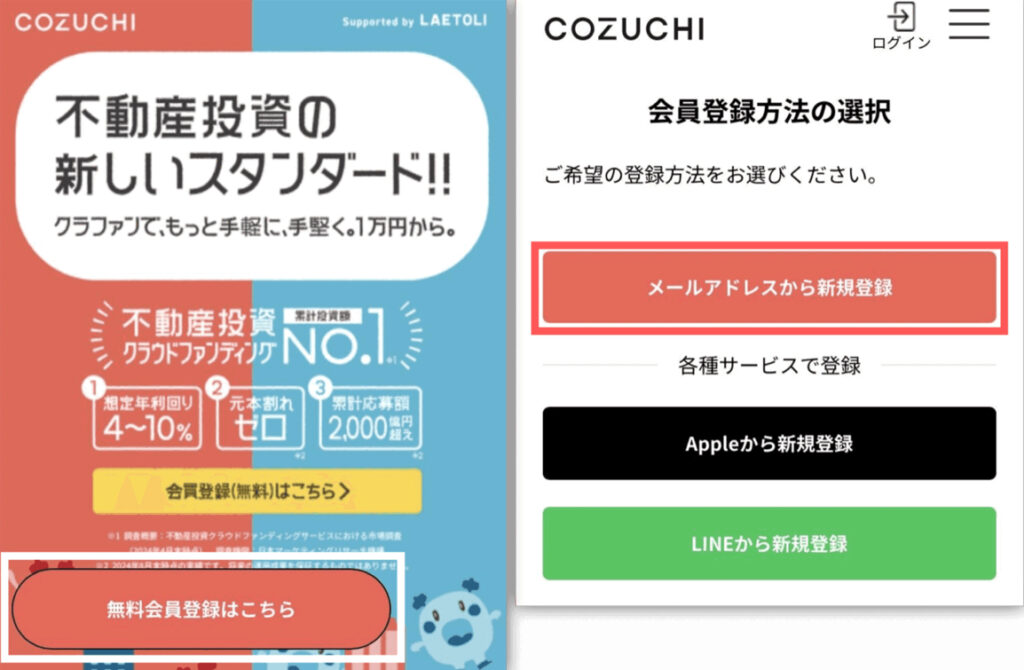 不動産投資の安定感とクラファンの気軽さをあわせ持つのがCOZUCHIの強み。投資初心者でも少額から参加できて、将来に向けた資産形成の第一歩として安心して取り組めます。まずは会員登録して、自分に合った案件をのぞいてみてくださいね♪