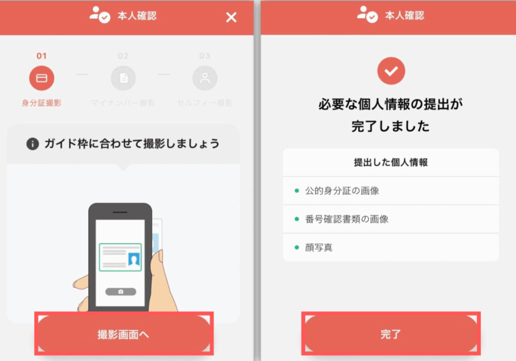 ガイドに沿って本人確認書類と顔写真の撮影をしよう♩