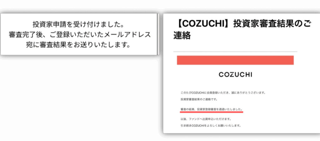審査が完了したらCOZUCHIからメールが届くよ♩